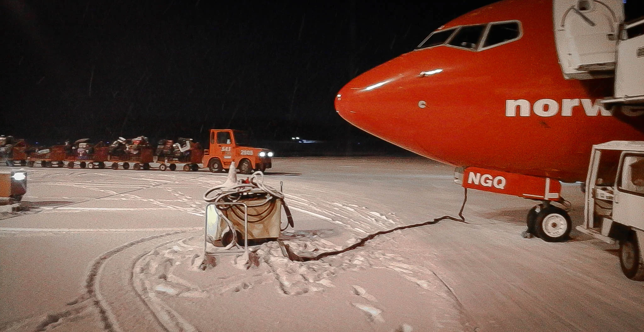As I'm flying up to Evenes, the afternoon quickly turns into sunset, and upon arrival at 15:30, it is already night. While ground staff in Oslo were frantically clearing up all the ice & snow, here it doesn't seem to be bothering anyone. It's just another normal winter day in the Arctic.