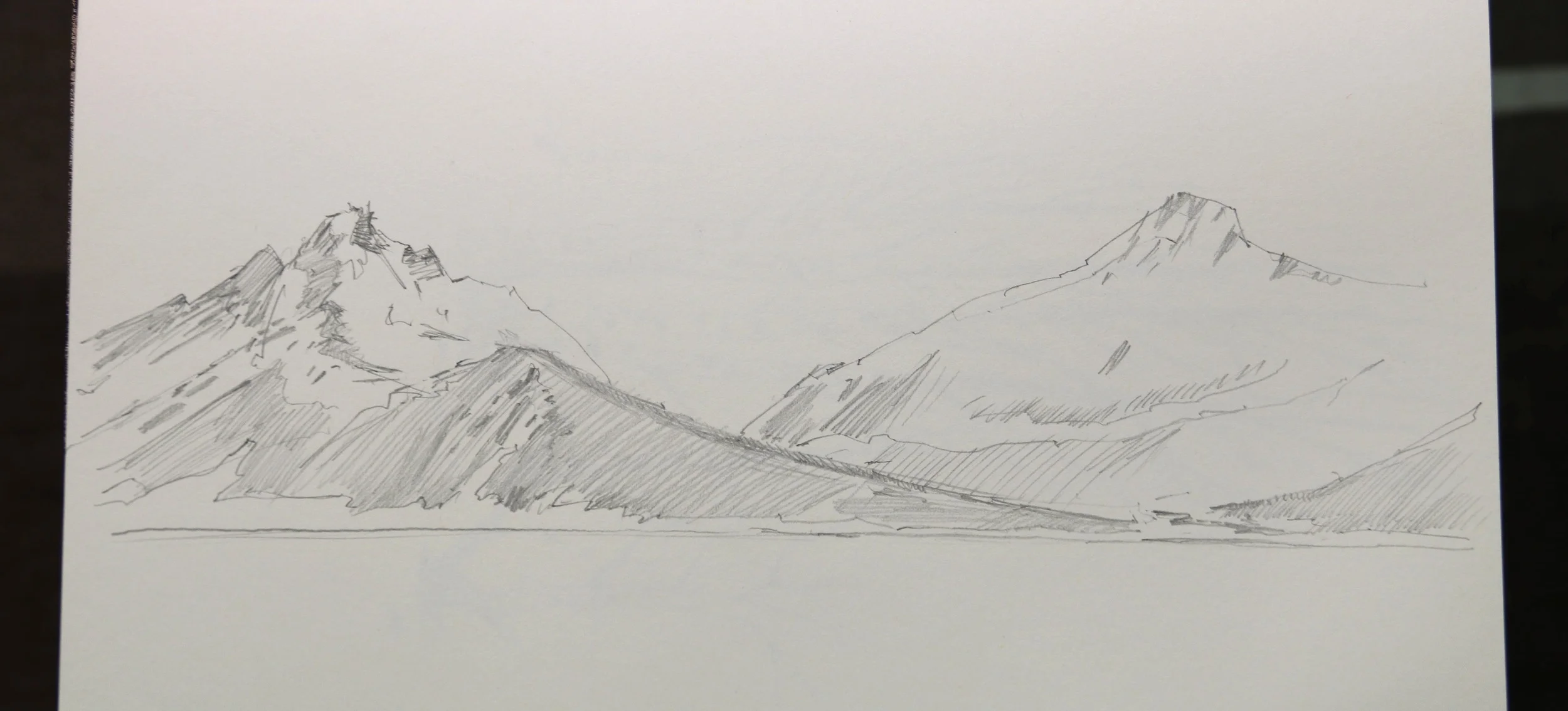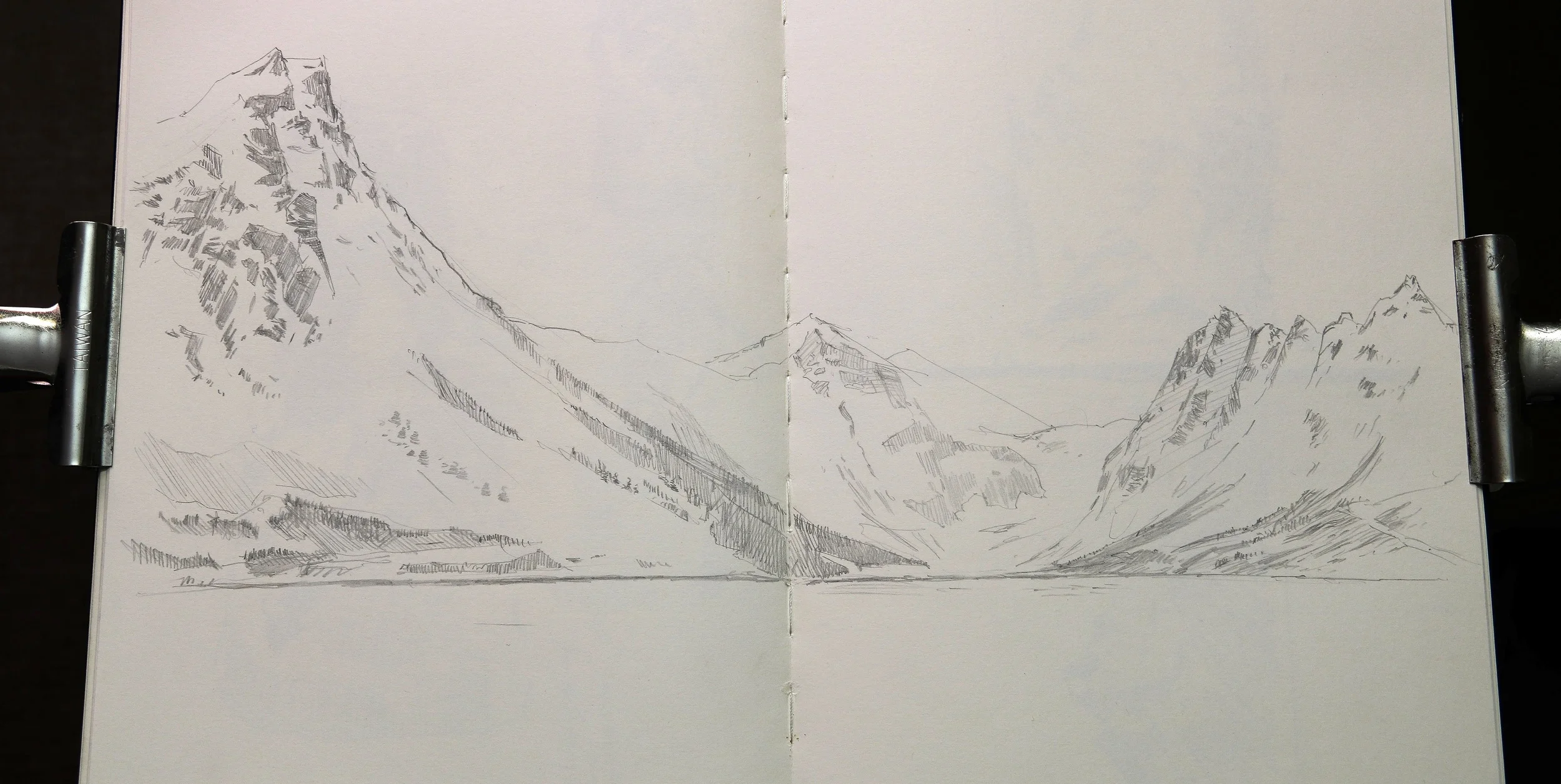 Enough to say that 5 days was not enough for this marvel of nature, and I feel this could easily become an addiction, or rather: A passion. I keep up my sketches of the surrounding mountains in between swims and the little bit of light we have left. We only have about 4 hours of daylight up here in January.