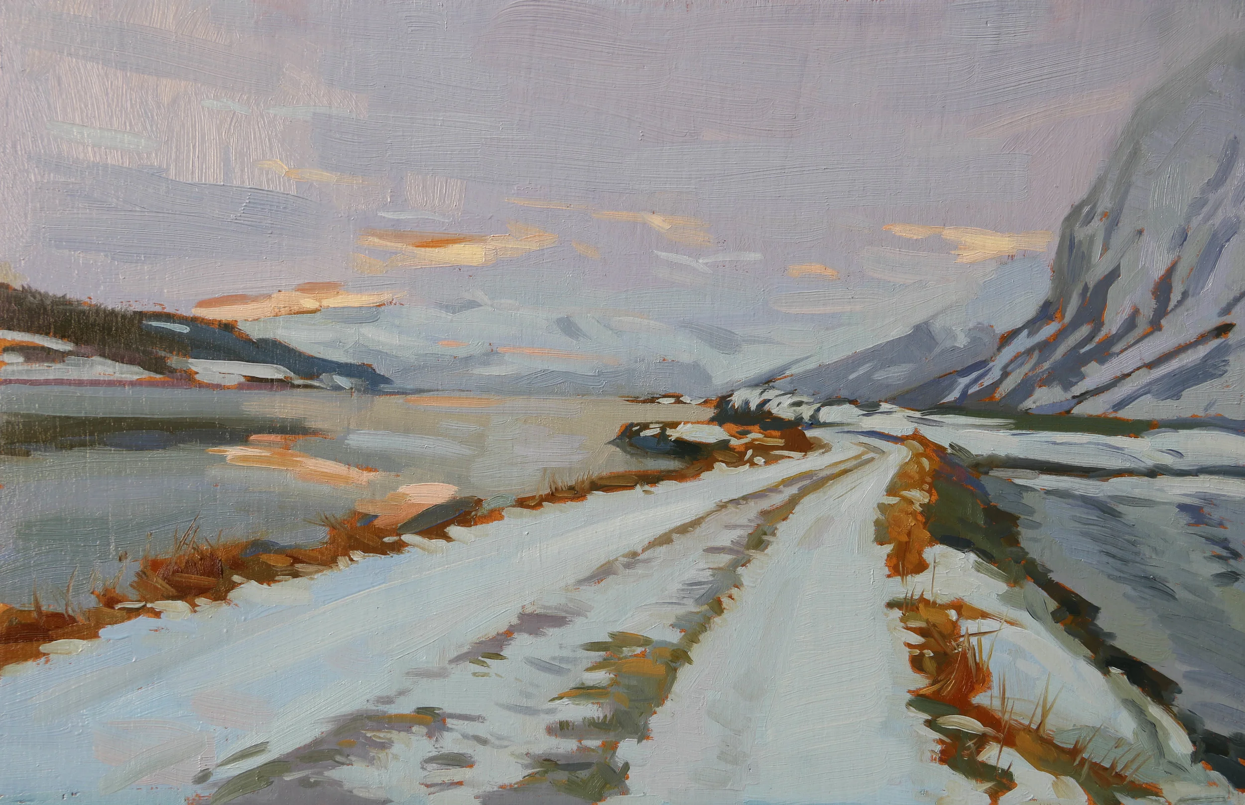 Road on Lyngen Fjord. oil on board. 20x30cm
