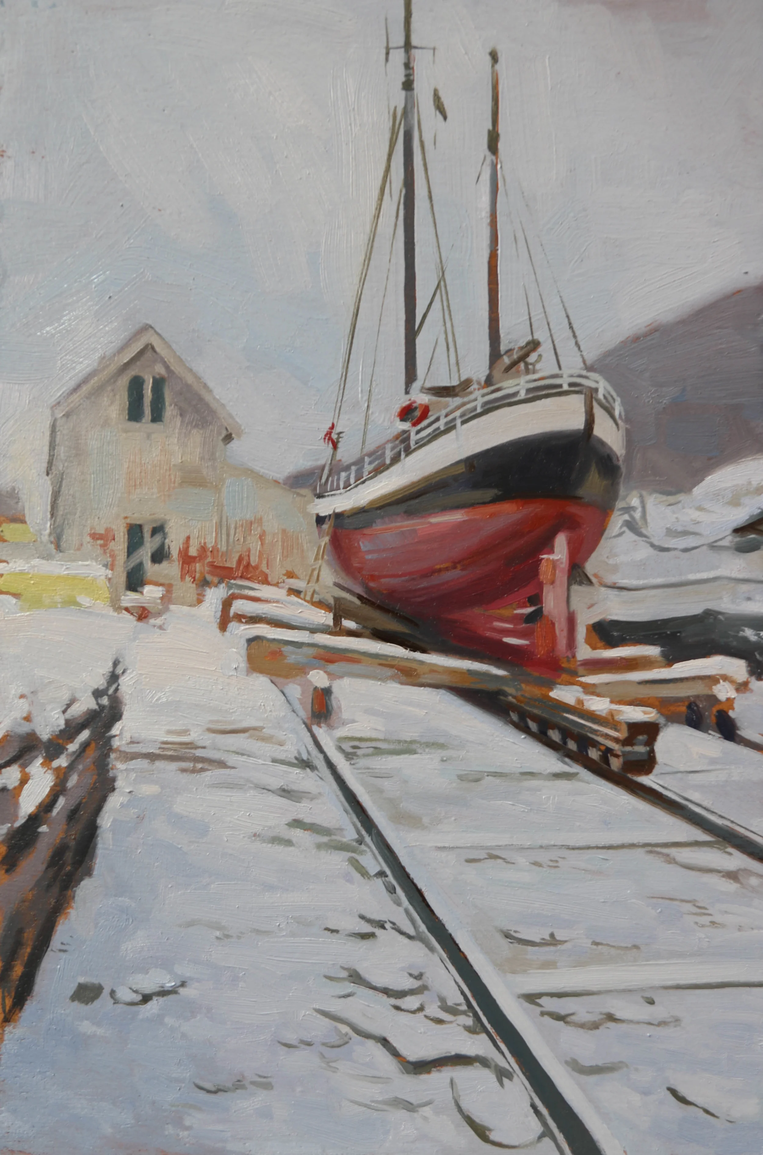 Lyngseidet Boat yard. oil on board. 20x30cm